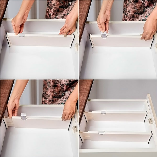 Bilo da se radi o kuhinjskom priboru, kupaonskim potrepštinama ili čarapama u spavaćoj sobi, ovi se razdjelnici mogu podesiti od 28 cm do 45 cm kako bi odgovarali većini ladica. Svoj prostor možete prilagoditi točno onako kako vam treba.