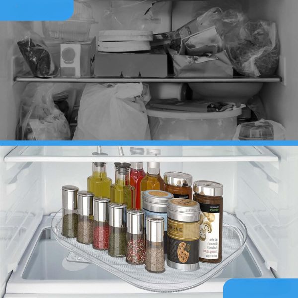 Umorni ste od pretrpanog hladnjaka? SPINTRAY održava vaš hladnjak organiziranim i bez nereda, omogućujući vam da pronađete ono što vam je potrebno, bez kopanja po hrpama hrane. Njegova glatka rotacija od 360° znači da je sve nadohvat ruke, štedeći vaše vrijeme i frustracije.